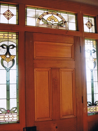 Stained glass entranceway in this historic places trust home located in the Christchurch suburb of Sumner.