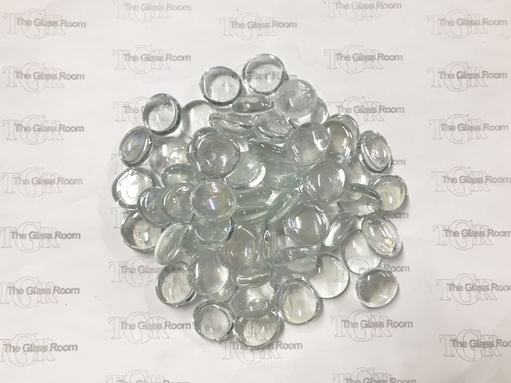 Clear Irisised Blobs 20mm in diameter. Bag weighs approx 414 grams.