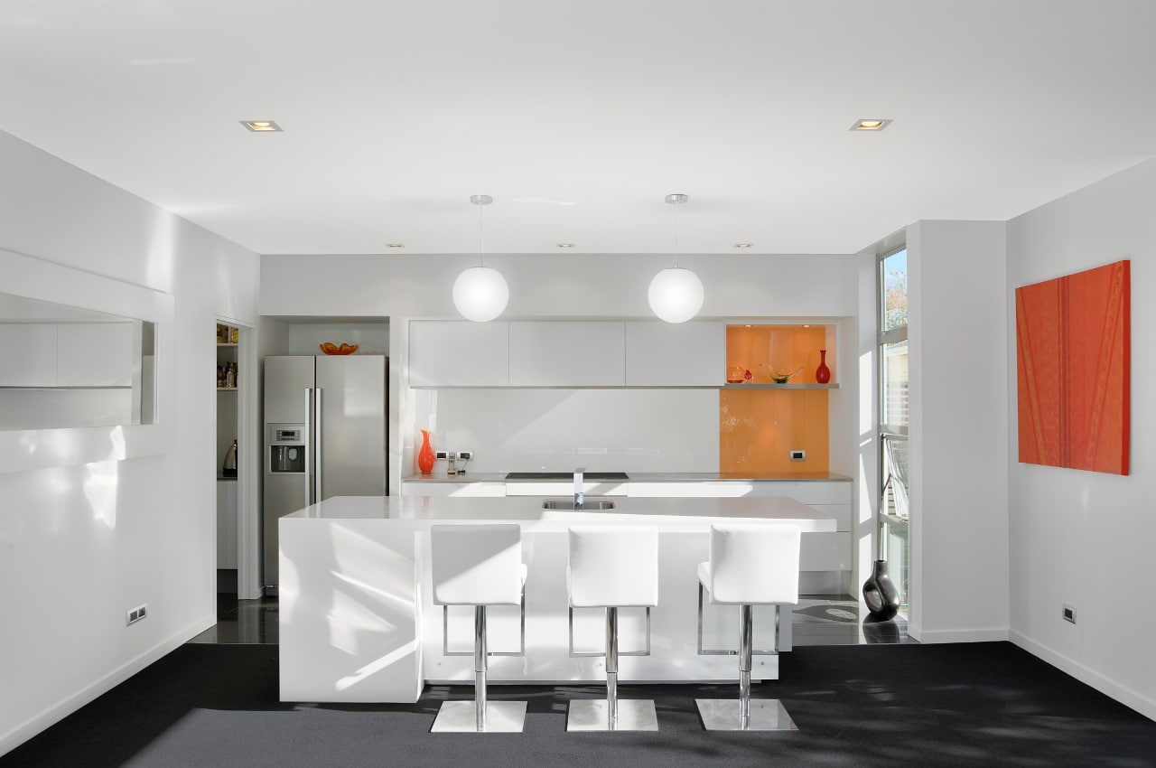 Using a combination of single colours in a kitchen splashback can provide a strong focus without overpowering the space. As we look to utilize colour on glass we need not allow colour to control the entire kitchen or out of fear try to make the glass recede into the background. Their are other ways of achieving balance and strength.