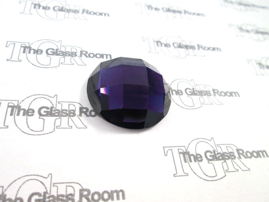 Faceted Round Jewel – Purple 30mm. This jewel has a mirror back, it is more reflective and catches the light beautifully!